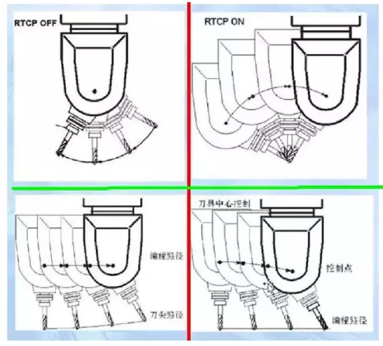 不具備RTCP的五軸機床和數(shù)控系統(tǒng)必須依靠CAM編程和后處理,事先規(guī)劃好刀路,同樣一個零件,機床換了,或者刀具換了,就必須重新進行CAM編程和后處理,因而只能被稱作假五軸,國內(nèi)很多五軸數(shù)控機床和系統(tǒng)都屬于這類假五軸。當然了,人家硬撐著把自己稱作是五軸聯(lián)動也無可厚非,但此(假)五軸并非彼(真)五軸!